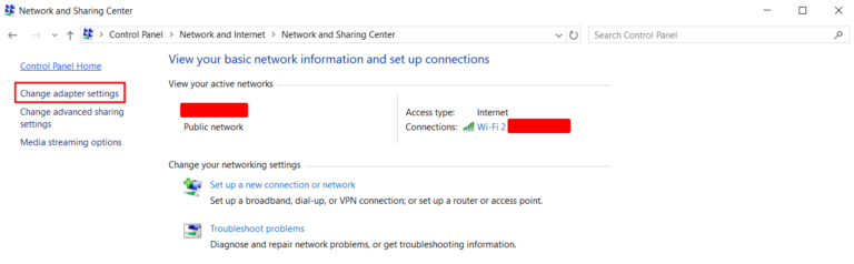 – Ở cột bên trái, nhấp vào Change adapter settings .