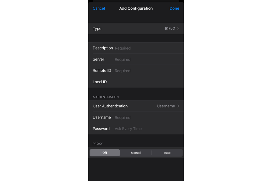 Để cài đặt và bật VPN trên iPhone, bạn có thể thực hiện theo cách thiết lập thủ công. Sau đây là hướng dẫn chi tiết: