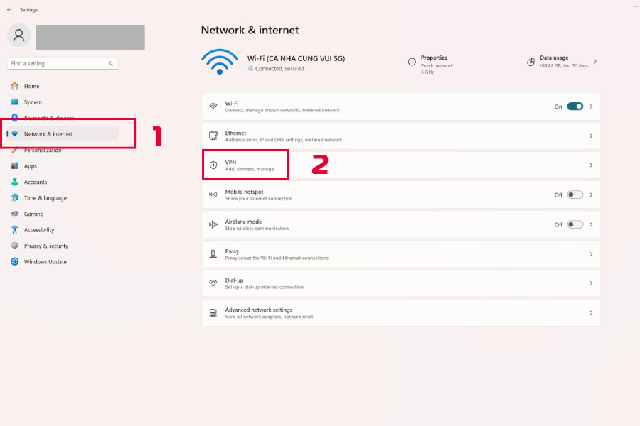 Bước 2: Truy cập Network & Internet > Chọn VPN