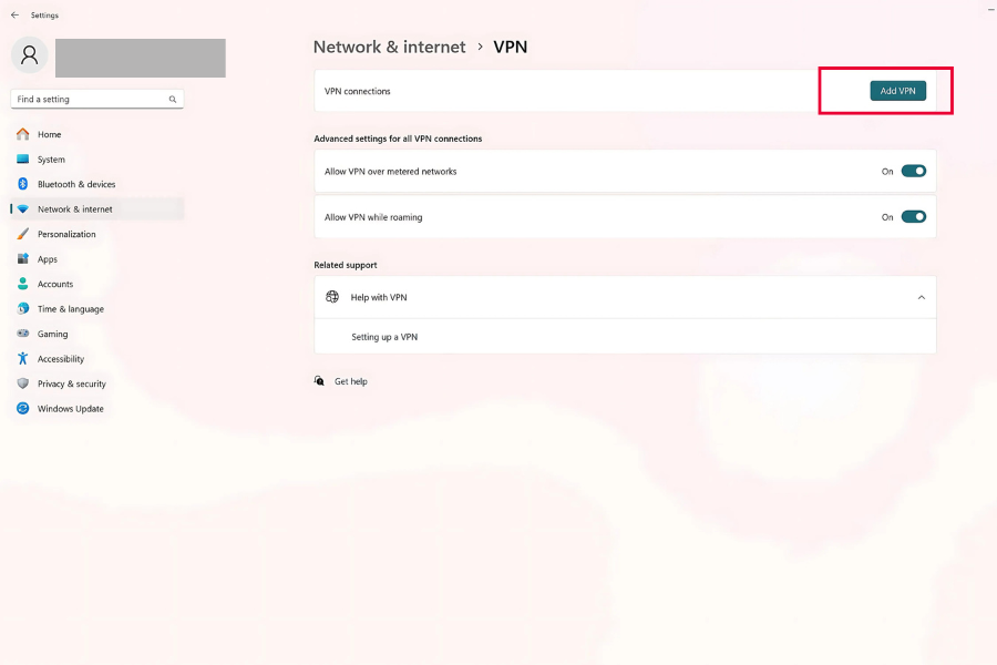 Bước 5: Sử dụng VPN bằng cách mở Settings > Network & Internet > VPN > Connect với VPN đã tạo trước đó.