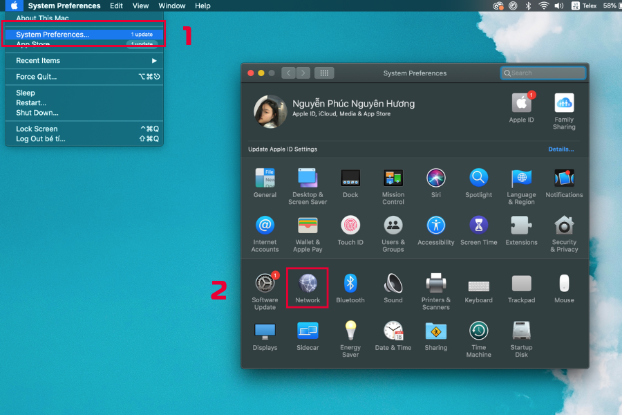 Bước 1: Chọn biểu tượng Apple > Chọn Tùy chọn hệ thống (System Preferences) > Chọn mục Mạng (Network).
