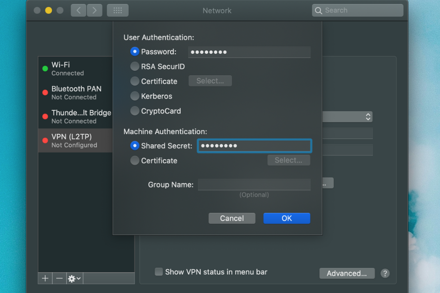 Bước 5: Nhập mật khẩu cho Password và Shared Secret > Chọn Ok.