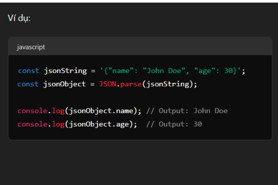 Nói cách khác, parse là để đọc dữ liệu JSON, còn stringify là để ghi hoặc gửi dữ liệu đi.